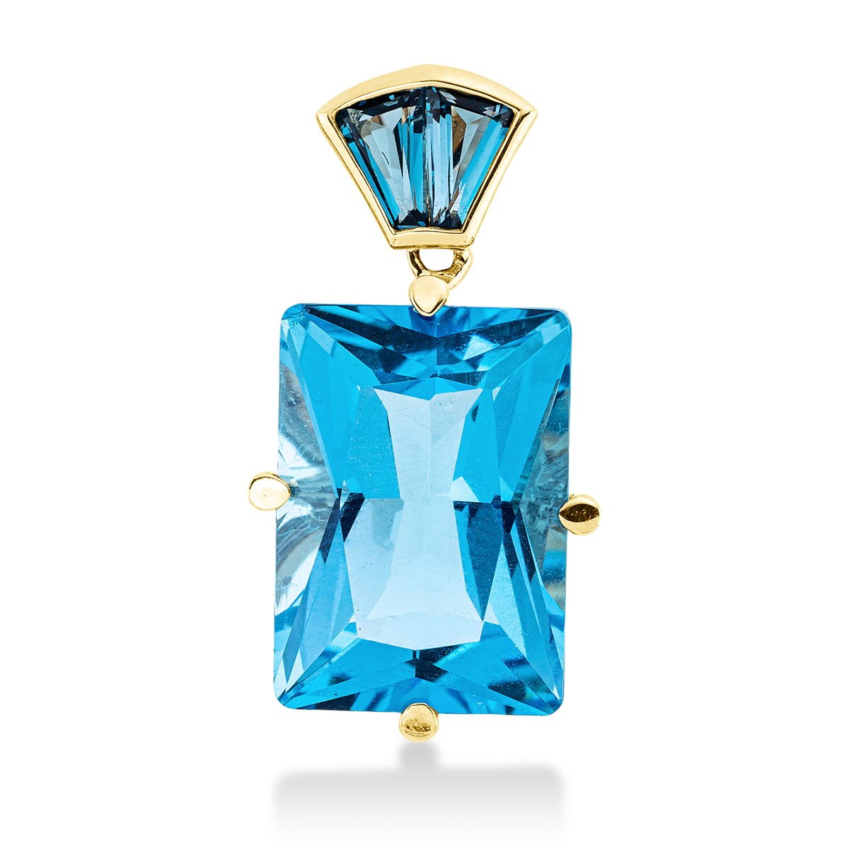 Anhänger 18 kt GG, 2 Topase 0,40 ct Lond. blue, 1 Topas 10,40 ct blau