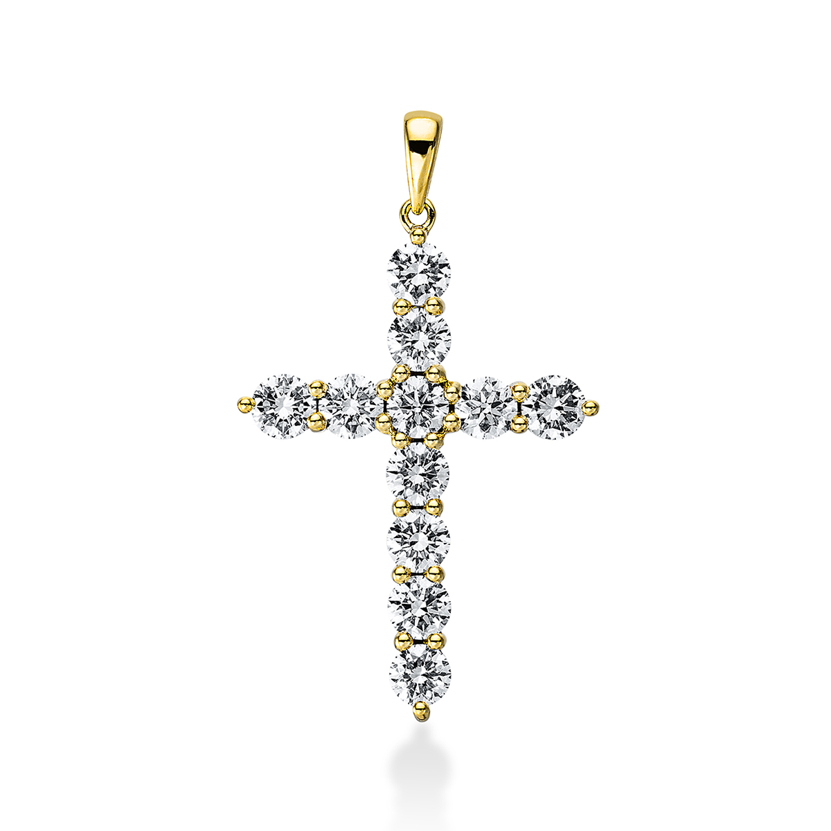 Anhänger 18 kt GG Kreuz, mit Öse, 11 Brillanten 1,98 ct, TW-si, H:33,3 mm, B:20,2 mm, S:3,7 mm