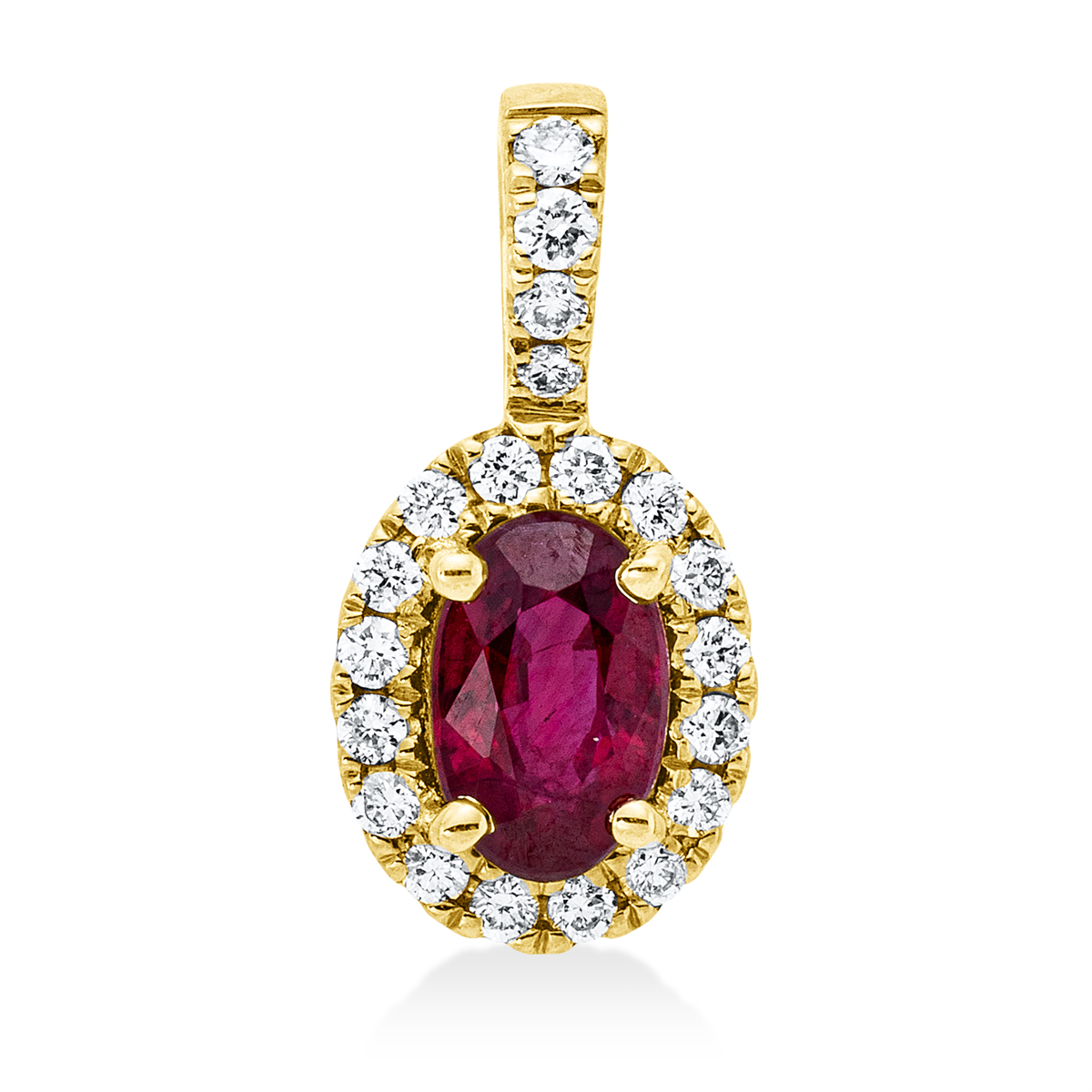 Anhänger 18 kt GG, mit Öse, 20 Brillanten 0,11 ct, TW-si, 1 Rubin 0,54 ct rot