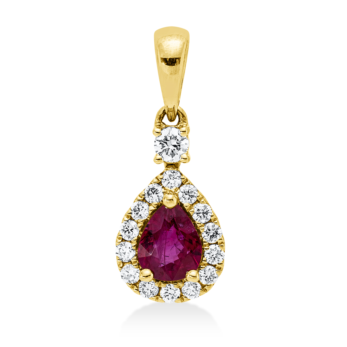 Anhänger 18 kt GG, mit Öse, 1 Brill. 0,04 ct, TW-si, 14 Brillanten 0,12 ct, TW-si, 1 Rubin 0,36 ct rot