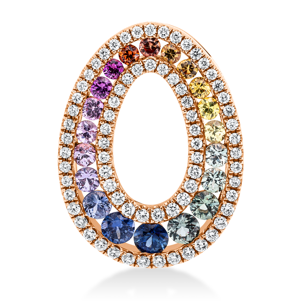 Anhänger 18 kt RG, 72 Brillanten 0,42 ct, TW-si, 20 Saphire 1,34 ct fancy