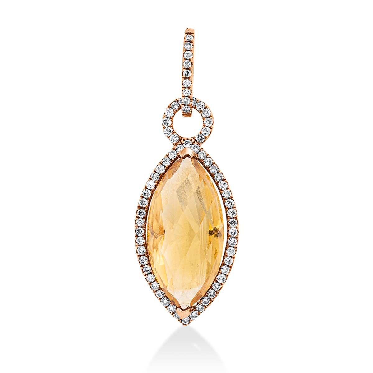 Anhänger 18 kt RG, mit Öse, 65 Brillanten 0,35 ct, W-si, 1 Citrin 7,40 ct gelb, H:34,0 mm, B:12,5 mm, S:10,6 mm