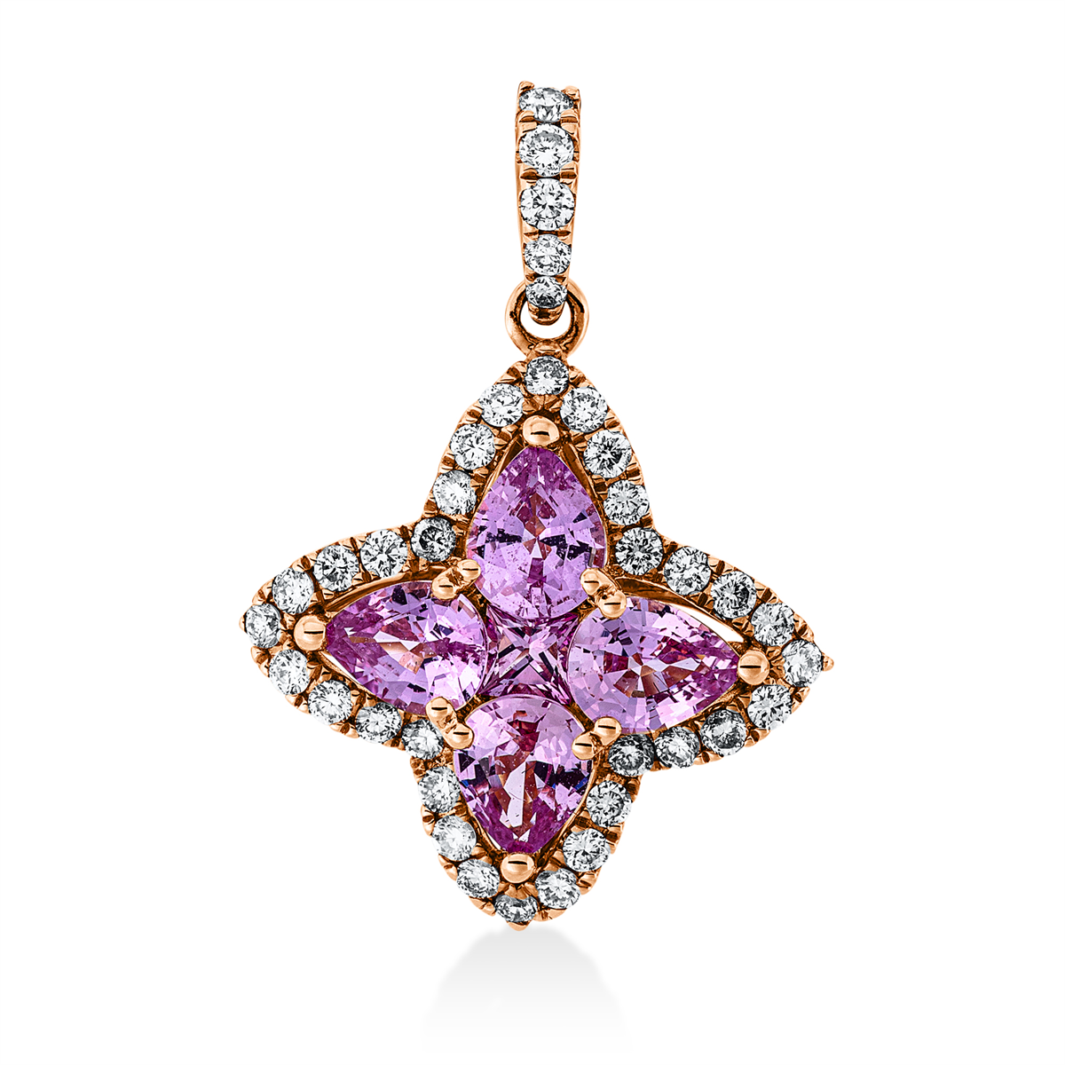Anhänger 18 kt RG, mit Öse, 37 Brillanten 0,27 ct, TW-si, 1 Saphir 0,08 ct pink, 4 Saphire 1,00 ct pink, H:30,5 mm, B:25,0 mm, S:15,1 mm