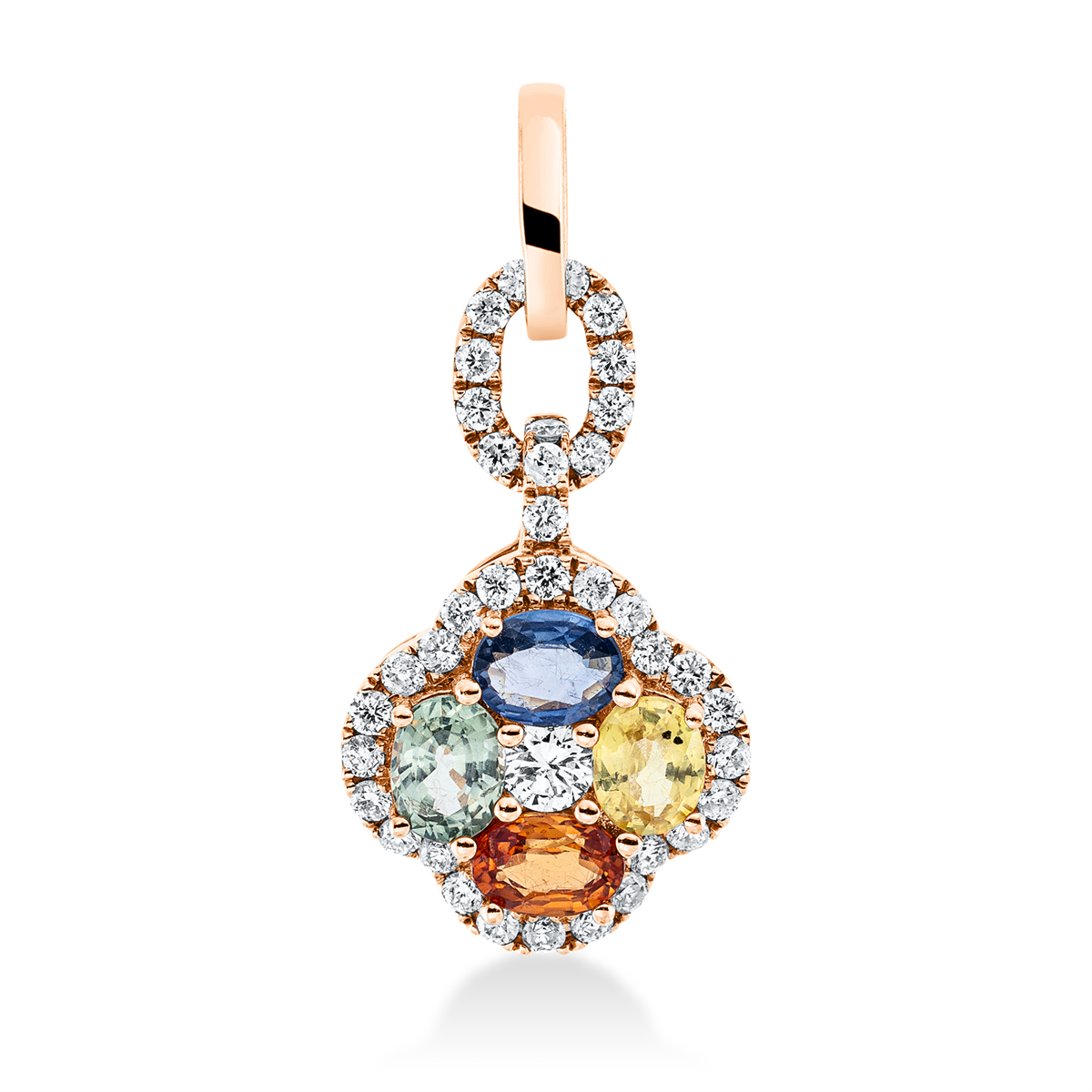 Anhänger 18 kt RG, mit Öse, 1 Brill. 0,06 ct, TW-si, 44 Brillanten 0,30 ct, TW-si, 4 Saphire 0,83 ct multicolor