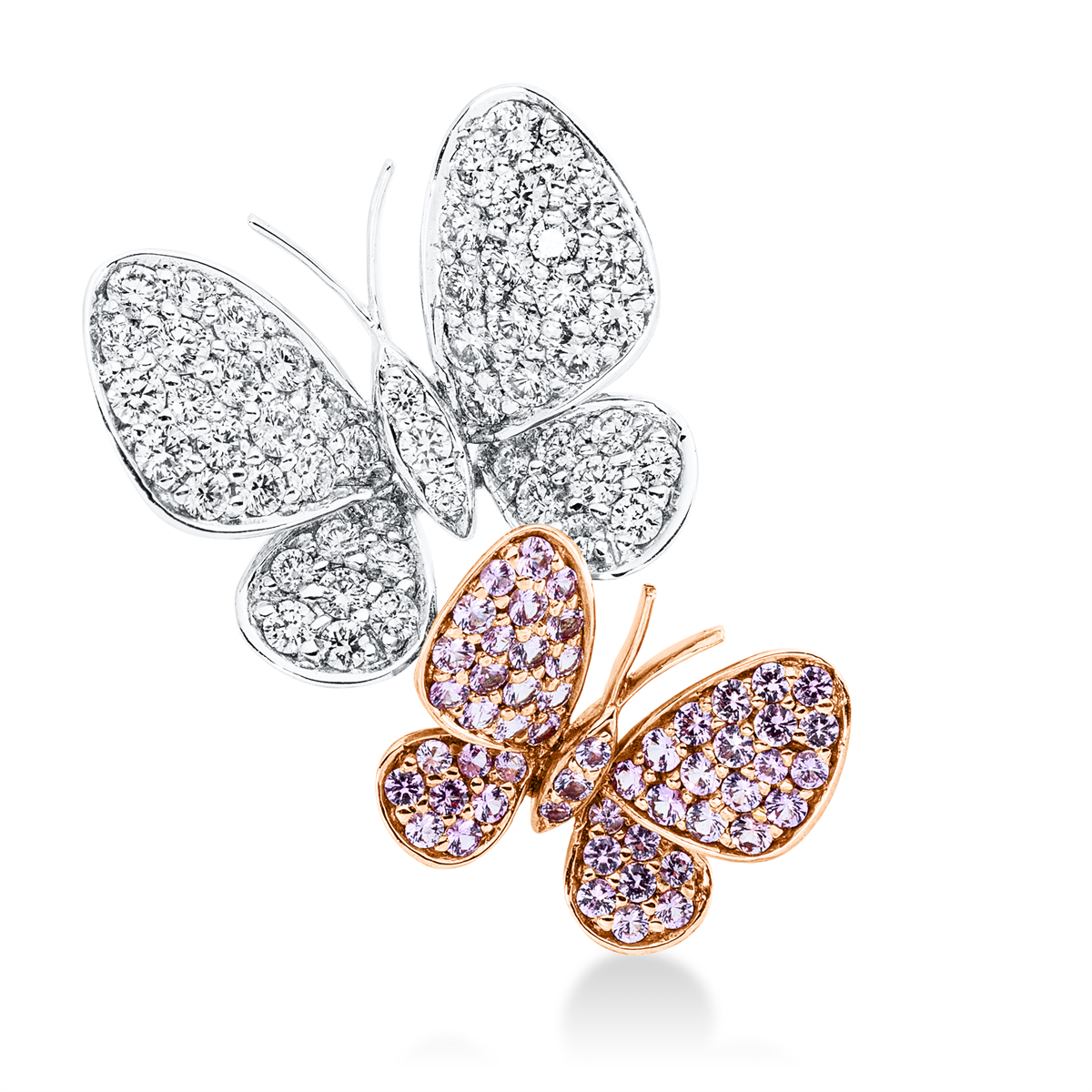 Anhänger 18 kt RG+WG Schmetterling, 53 Brillanten 0,73 ct, TW-vsi, 53 Saphire 0,39 ct pink