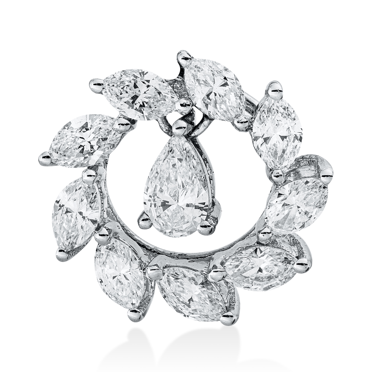 Anhänger 18 kt WG, 1 Tropfen 0,16 ct, TW-vsi/si, 9 Navette 0,54 ct, TW-vsi/si, H:12,2 mm, B:12,4 mm, S:4,2 mm