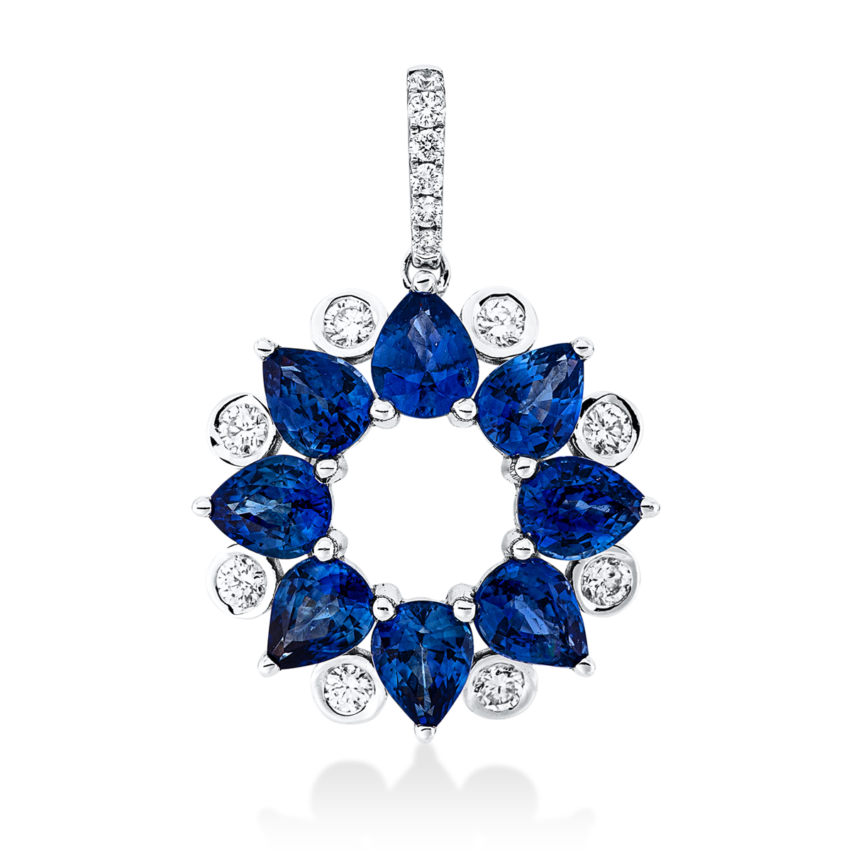Anhänger 18 kt WG, 14 Brillanten 0,22 ct, TW-si, 8 Saphire 2,19 ct blau, H:31,3 mm, B:25,8 mm, S:14,3 mm