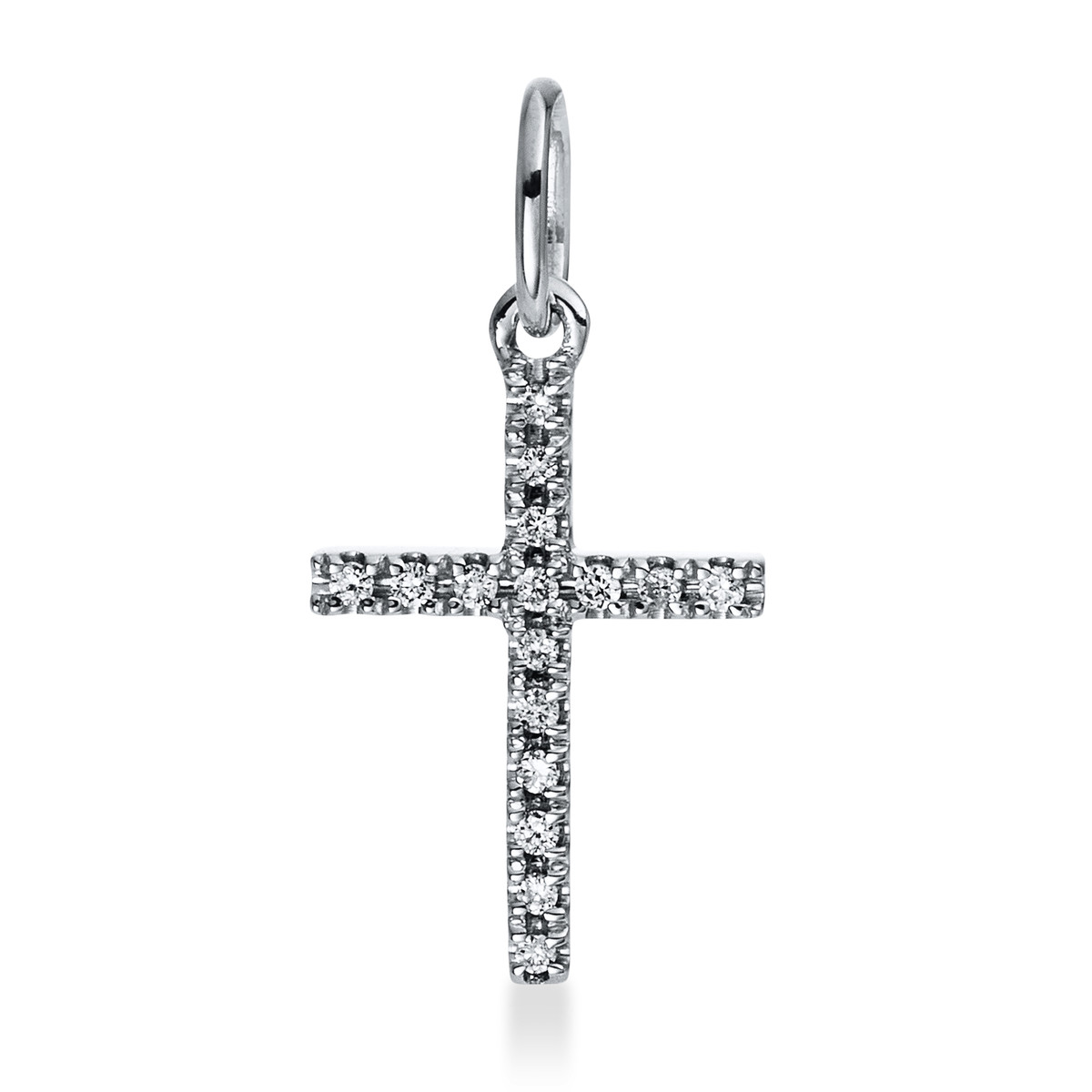 Anhänger 18 kt WG Kreuz, mit Öse, 16 Brillanten 0,03 ct, TW-si, H:12,0 mm, B:6,0 mm, S:0,8 mm