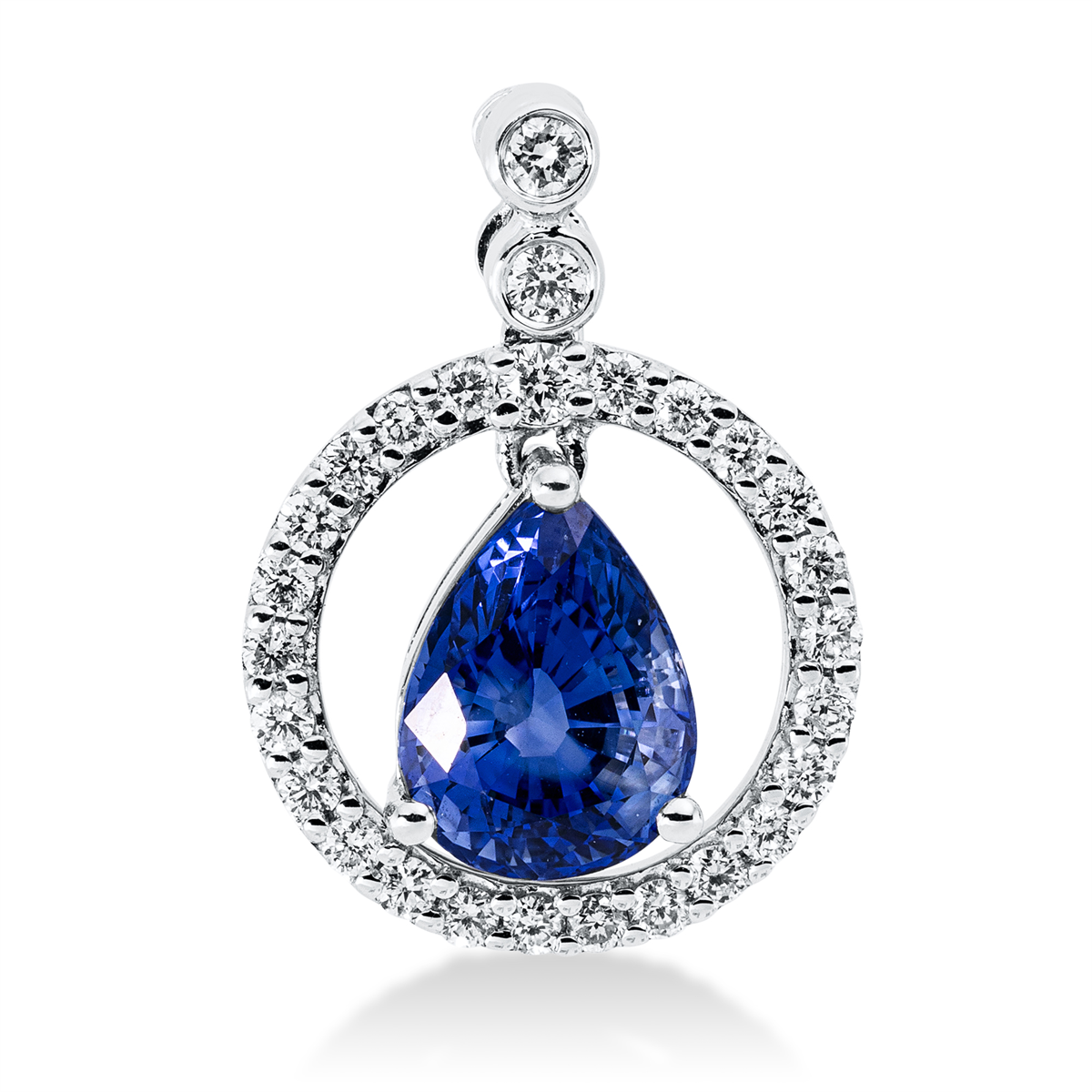 Anhänger 18 kt WG, mit Öse, 27 Brillanten 0,24 ct, TW-si, 1 Saphir 1,69 ct blau