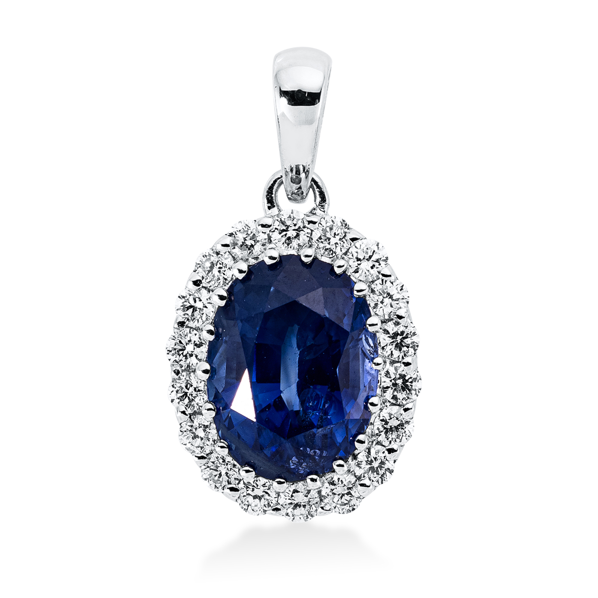Anhänger 18 kt WG, mit Öse, 18 Brillanten 0,22 ct, TW-si, 1 Saphir 2,17 ct blau