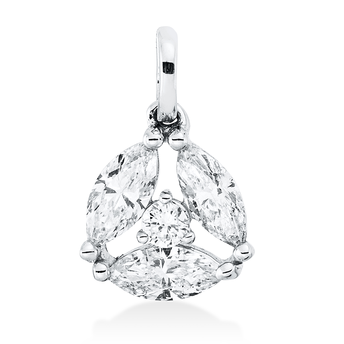 Anhänger 18 kt WG, mit Öse, 3 Navette 0,39 ct, TW-si, 1 Brill. 0,03 ct, TW-si, H:10,0 mm, B:5,5 mm, S:0,5 mm