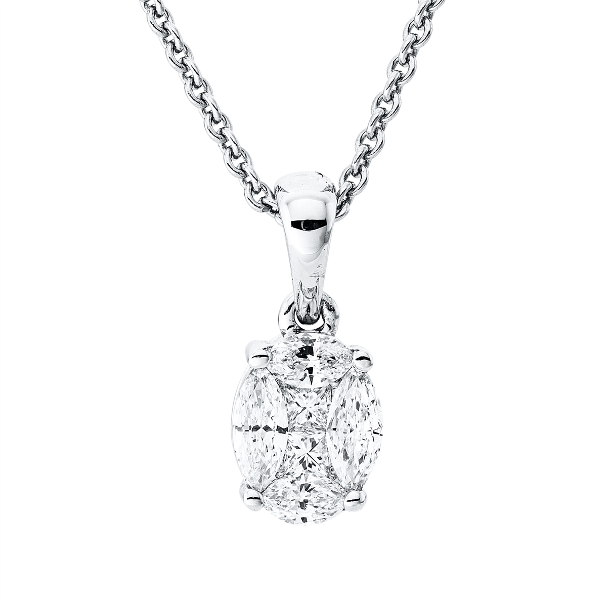 Anhänger 18 kt WG, mit Öse, 2 Navette 0,13 ct, TW-vsi/si, 2 Princ. 0,08 ct, TW-vsi/si, 2 Navette 0,18 ct, TW-vsi/si, H:13,0 mm, B:5,5 mm, S:3,0 mm