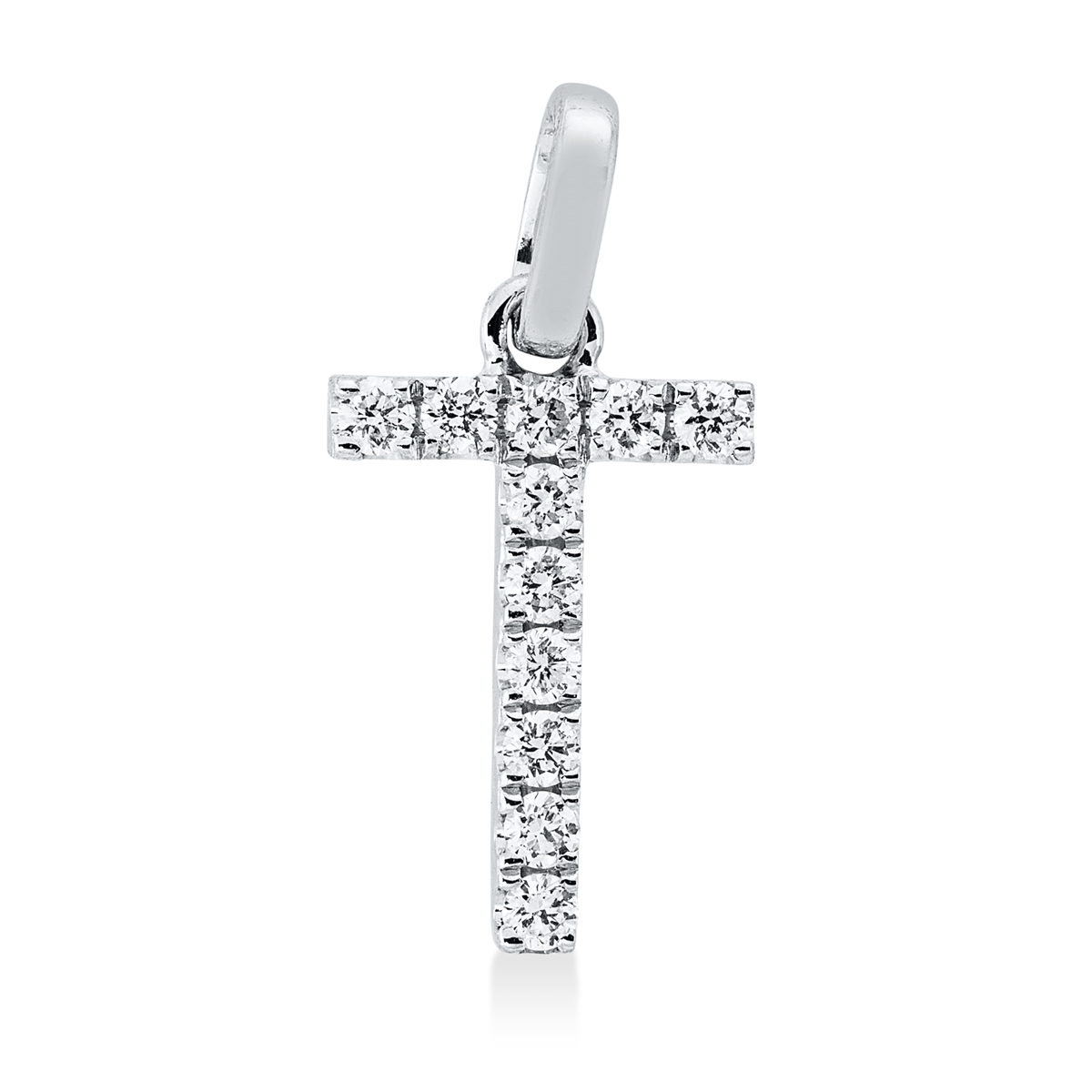 Anhänger 18 kt WG T, 11 Brillanten 0,12 ct, TW-si, H:15,3 mm, B:7,6 mm, S:1,4 mm
