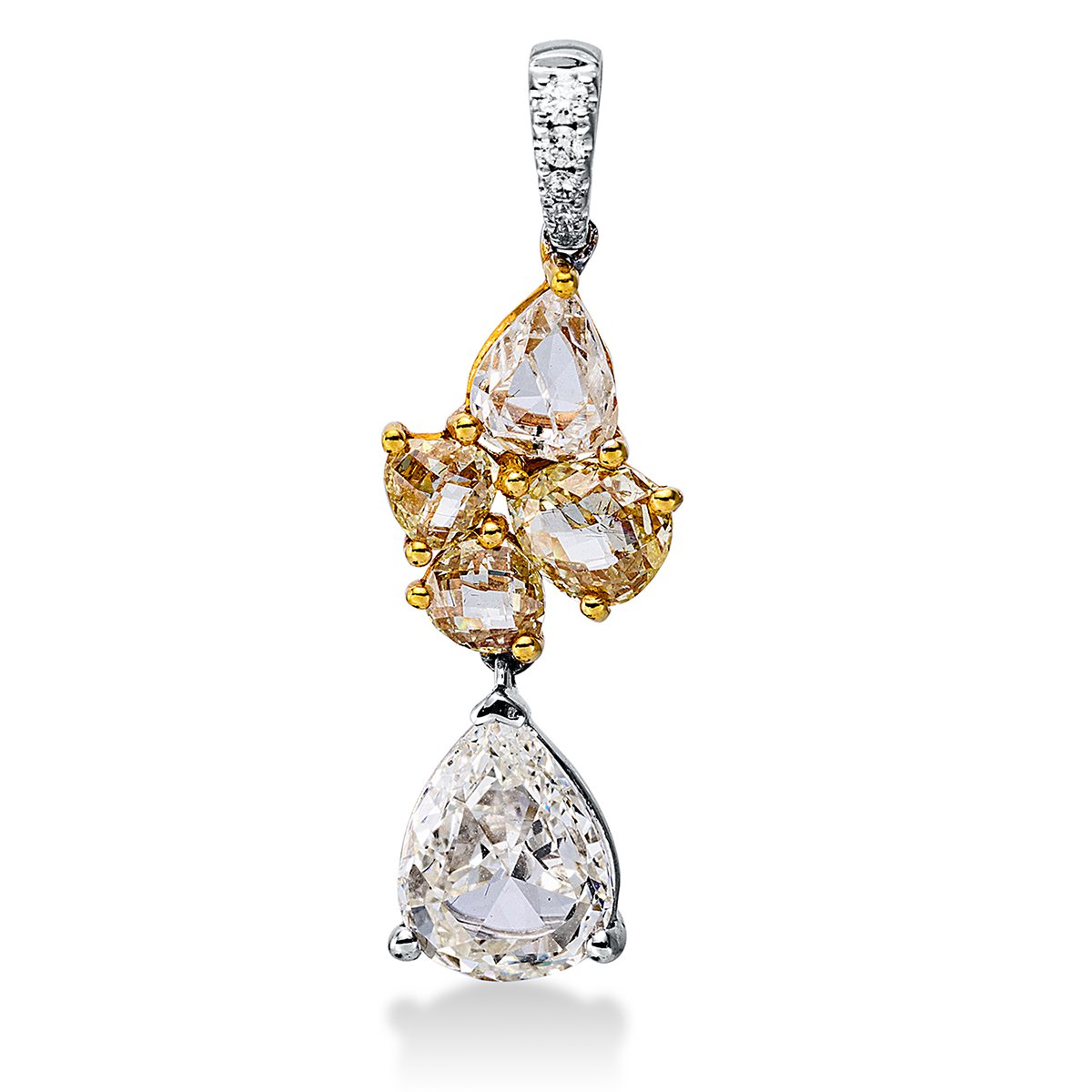 Anhänger 18 kt WG+GG, mit Öse, 5 Brillanten 0,05 ct, TW-si, 5 Rosen-Schl 2,10 ct, gelb