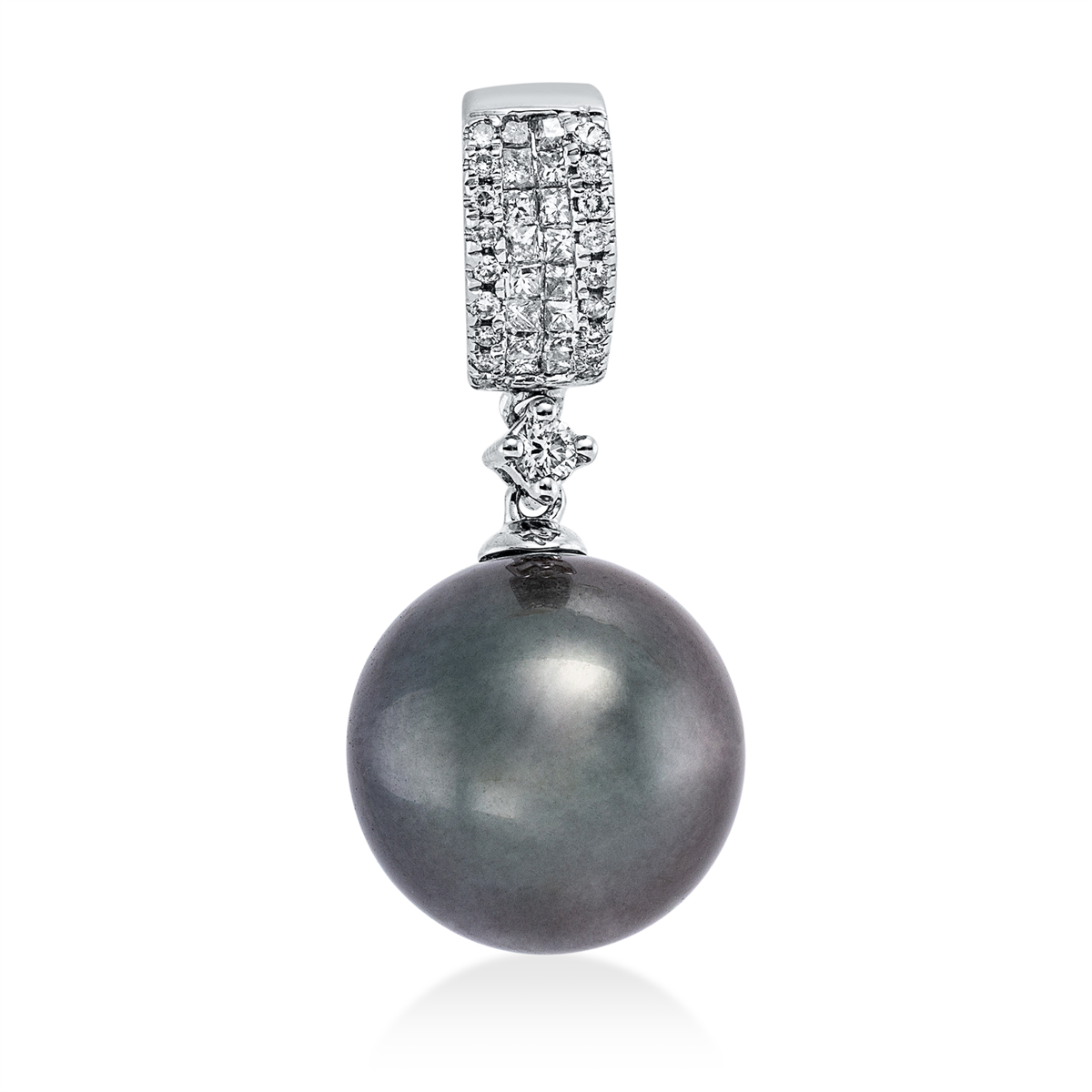 Anhänger 18 kt WG, 16 Princ. 0,12 ct, W-si, 19 Brillanten 0,08 ct, W-si, 1 TA silbergrau 11,5 mm