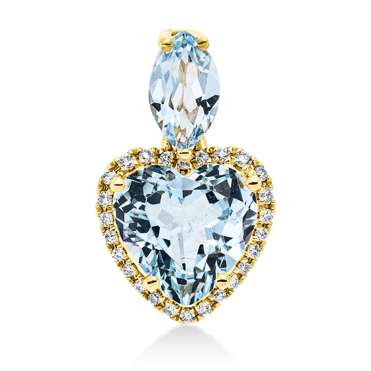 Anhänger 3er-Krappe 18 kt GG Herz, mit Öse, 26 Brillanten 0,10 ct, TW-si, 1 Topas 2,50 ct sky blue, 1 Topas 0,60 ct sky blue