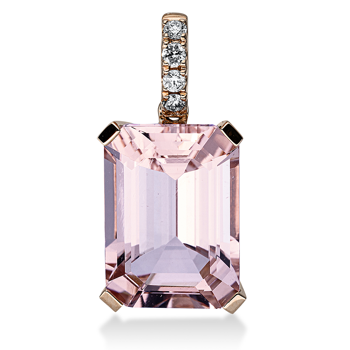 Anhänger 4er-Krappe 18 kt RG, 4 Brillanten 0,10 ct, TW-si, 1 Morganit 6,60 ct pink, H:21,5 mm, B:10,1 mm, S:7,7 mm