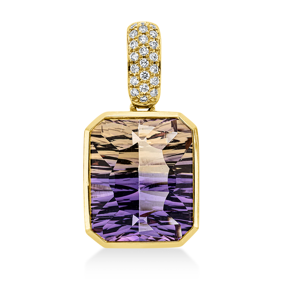 Anhänger Zarge 18 kt GG, mit Öse, 22 Brillanten 0,10 ct, TW-si, 1 Ametrin 6,32 ct gelb-lila