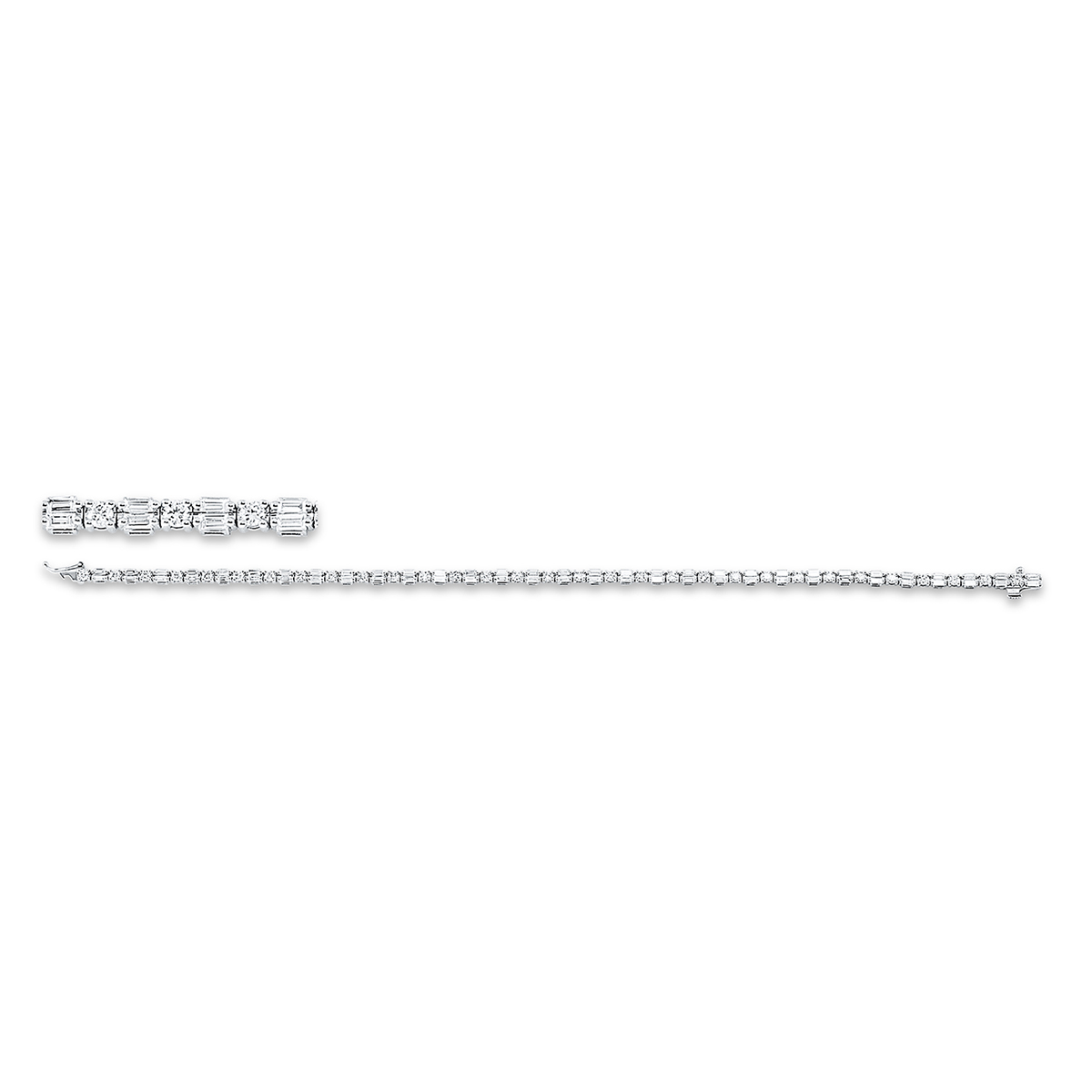Armband 14 kt WG, 62 Baguette 1,10 ct, F-vsi, 31 Brillanten 0,89 ct, F-si, B:2,5 mm, L:18,0 cm, S:2,5 mm