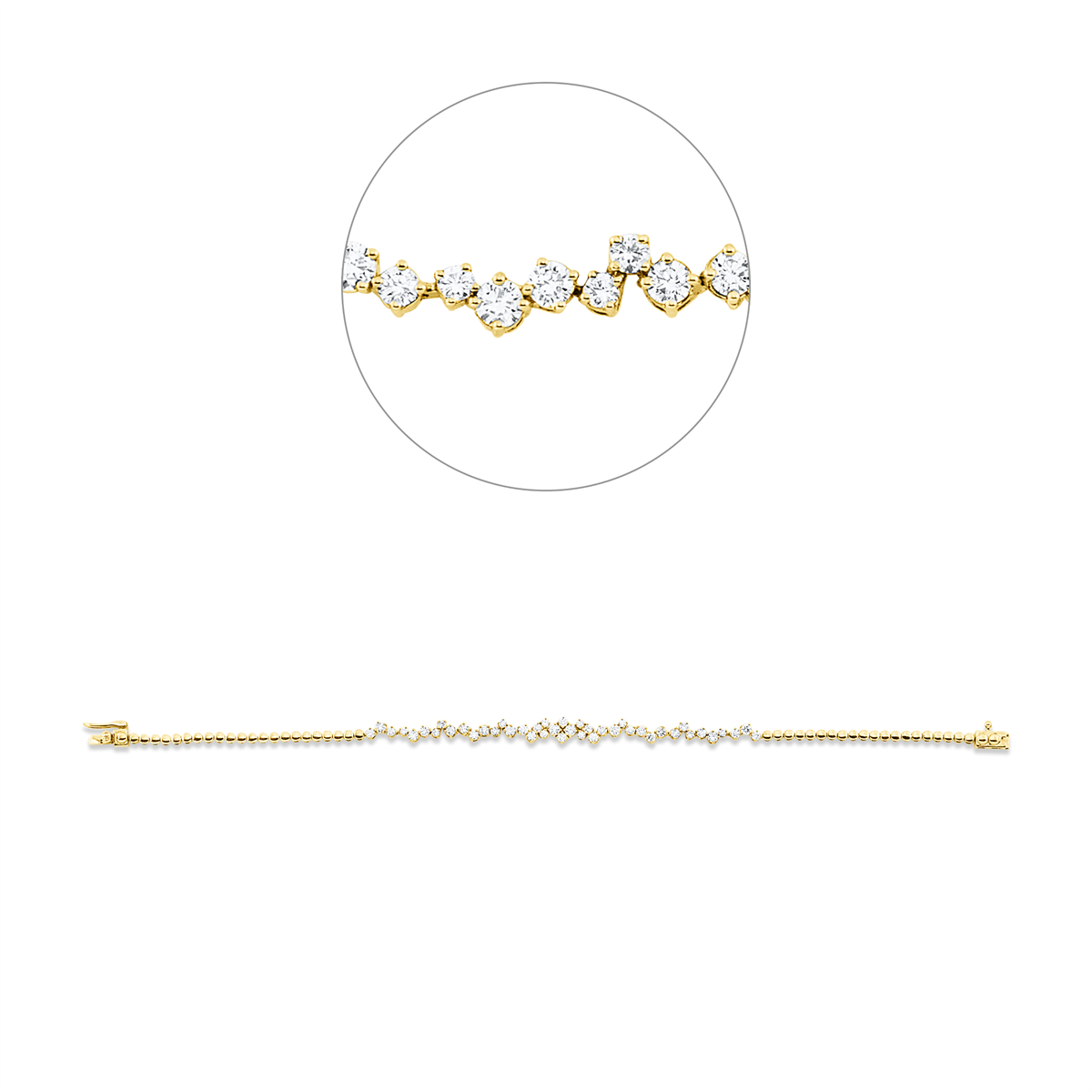 Armband 18 kt GG, 26 Brillanten 0,76 ct, TW-si, 8 Brillanten 0,36 ct, TW-si, 10 Brillanten 0,18 ct, TW-si, B:5,6 mm, L:19,0 cm, S:2,4 mm