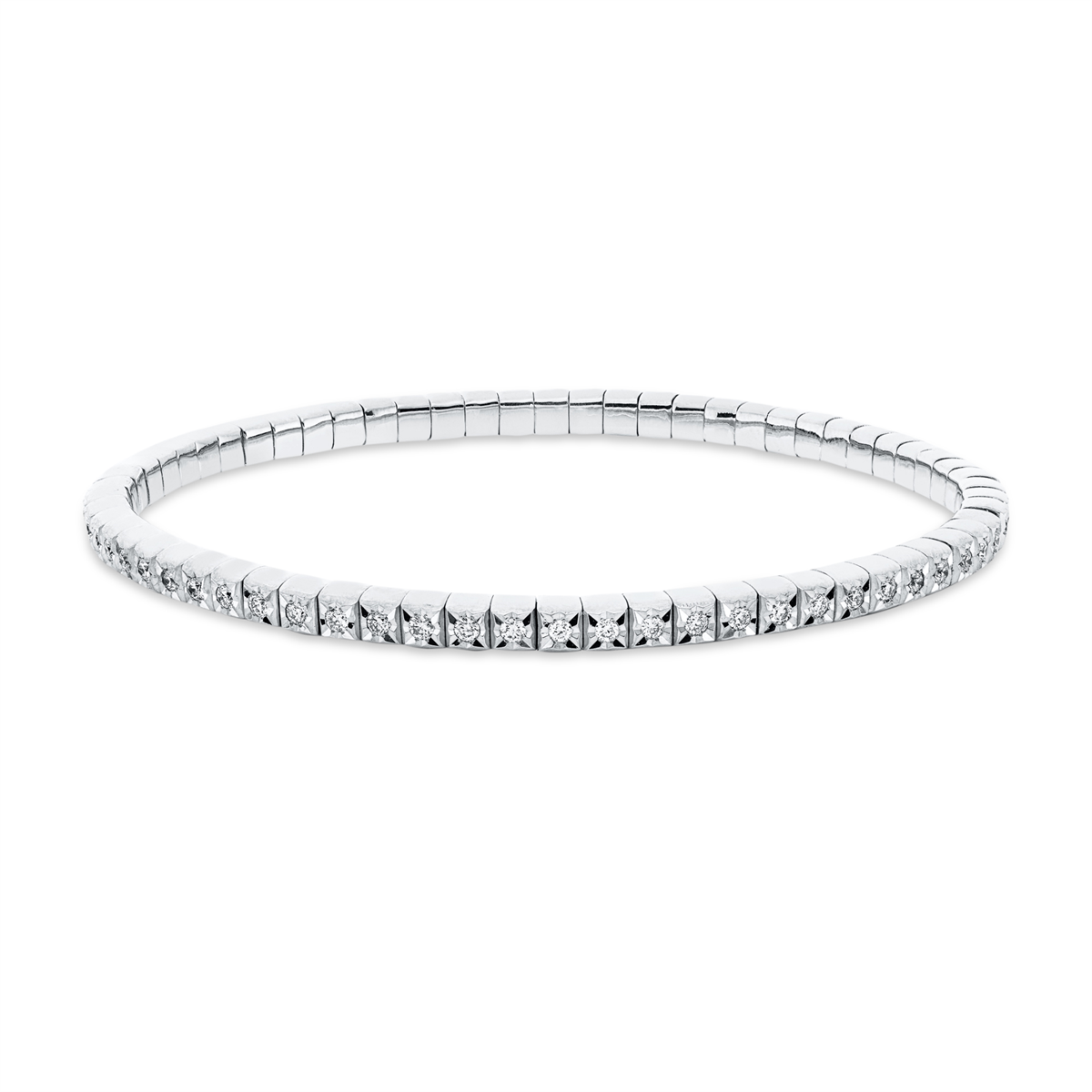 Armband 18 kt GG, Flex-Band, variabel, 65 Brillanten 1,00 ct, TW-si, L:18,0 cm, Ø:55,0 mm