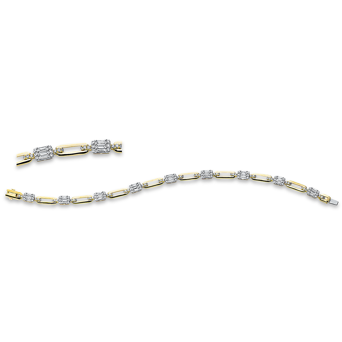 Armband 18 kt GG+WG, 27 Baguette 1,07 ct, TW-si, 108 Brillanten 1,08 ct, TW-si, B:4,6 mm, L:17,8 cm, S:2,8 mm