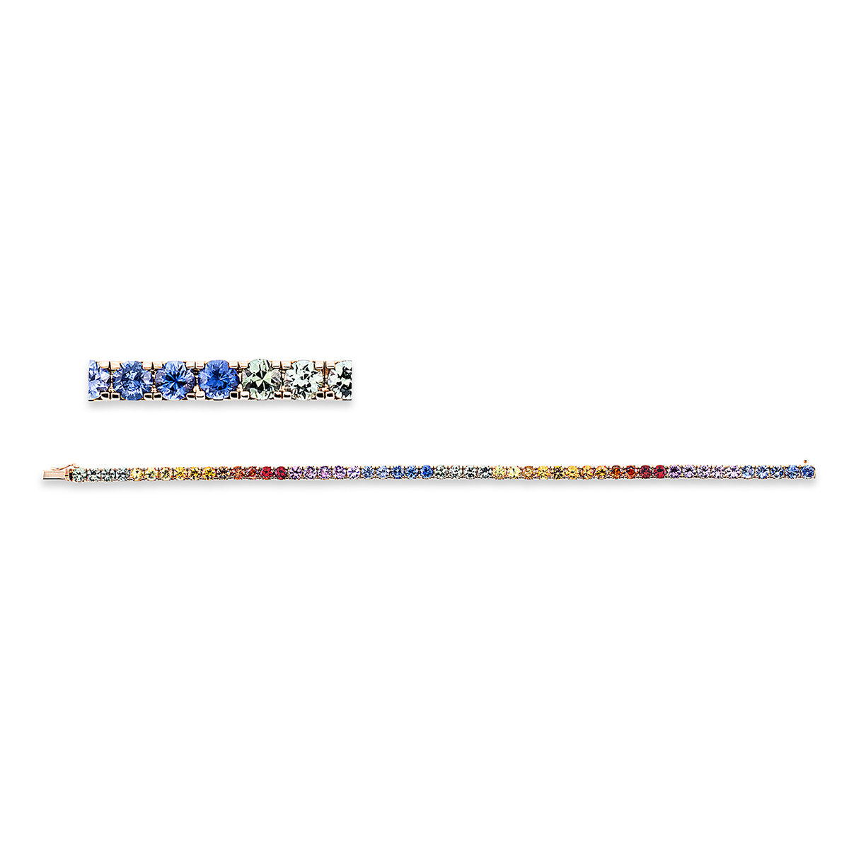 Armband 18 kt RG, 51 Saphire 9,12 ct fancy, B:3,4 mm, L:17,8 cm