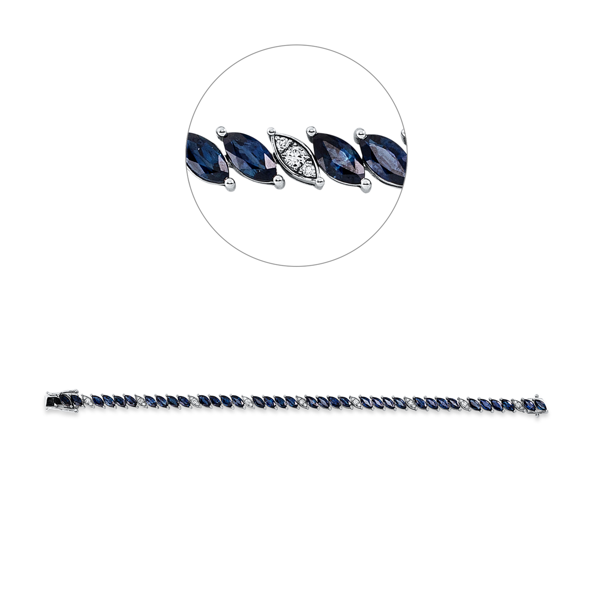 Armband 18 kt WG, 27 Brillanten 0,32 ct, F-vsi, 36 Saphire 10,82 ct blau, L:17,8 cm