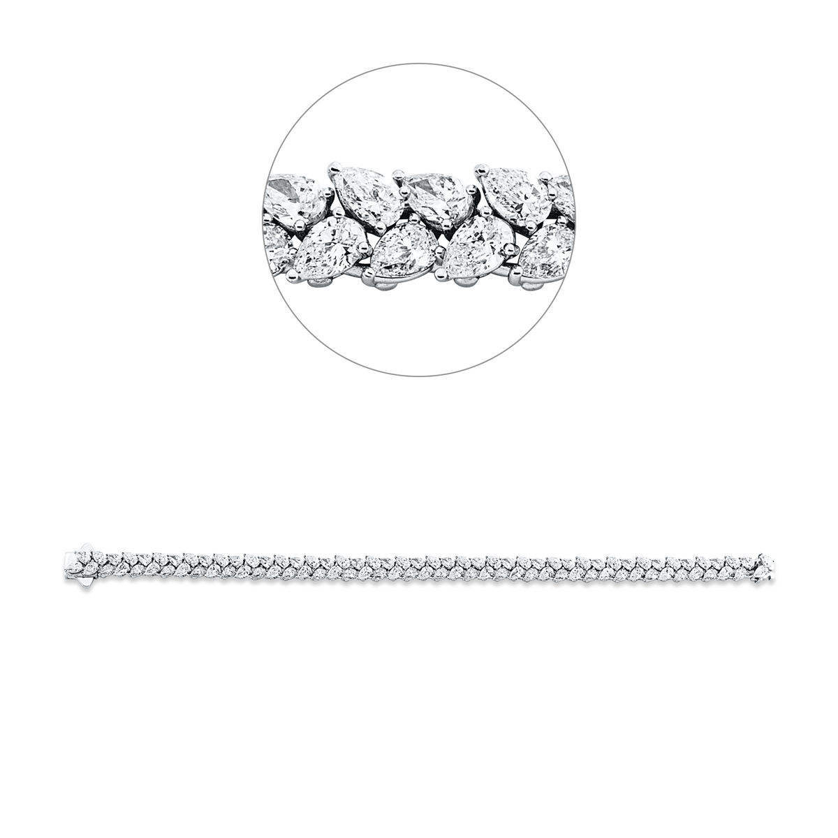 Armband 18 kt WG, 92 Tropfen 12,45 ct, F-vsi, B:6,2 mm, L:18,0 cm, S:4,2 mm
