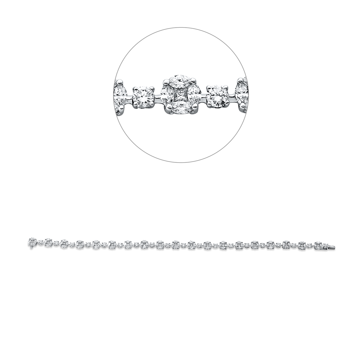 Armband 18 kt WG, 19 Princ. 0,81 ct, TW-vvs, 76 Navette 2,68 ct, TW-vvs, 19 Brillanten 1,60 ct, TW-vvs, B:5,0 mm, L:17,5 cm, S:1,5 mm
