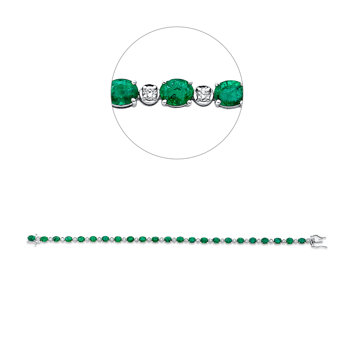 Armband 18 kt WG, 23 Brillanten 0,45 ct, F-vsi/si, 23 Smaragde 5,15 ct grün, B:3,3 mm, L:16,5 cm, S:3,7 mm