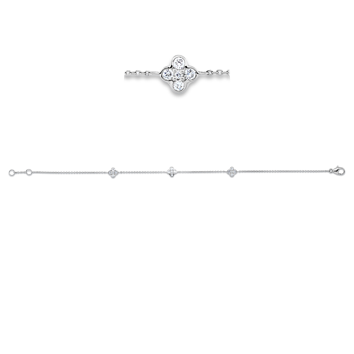 Armband 18 kt WG, mit ZÖ 18 cm, 3 Brillanten 0,03 ct, TW-si, 12 Brillanten 0,30 ct, TW-si, B:5,9 mm, L:19,0 cm, S:2,5 mm