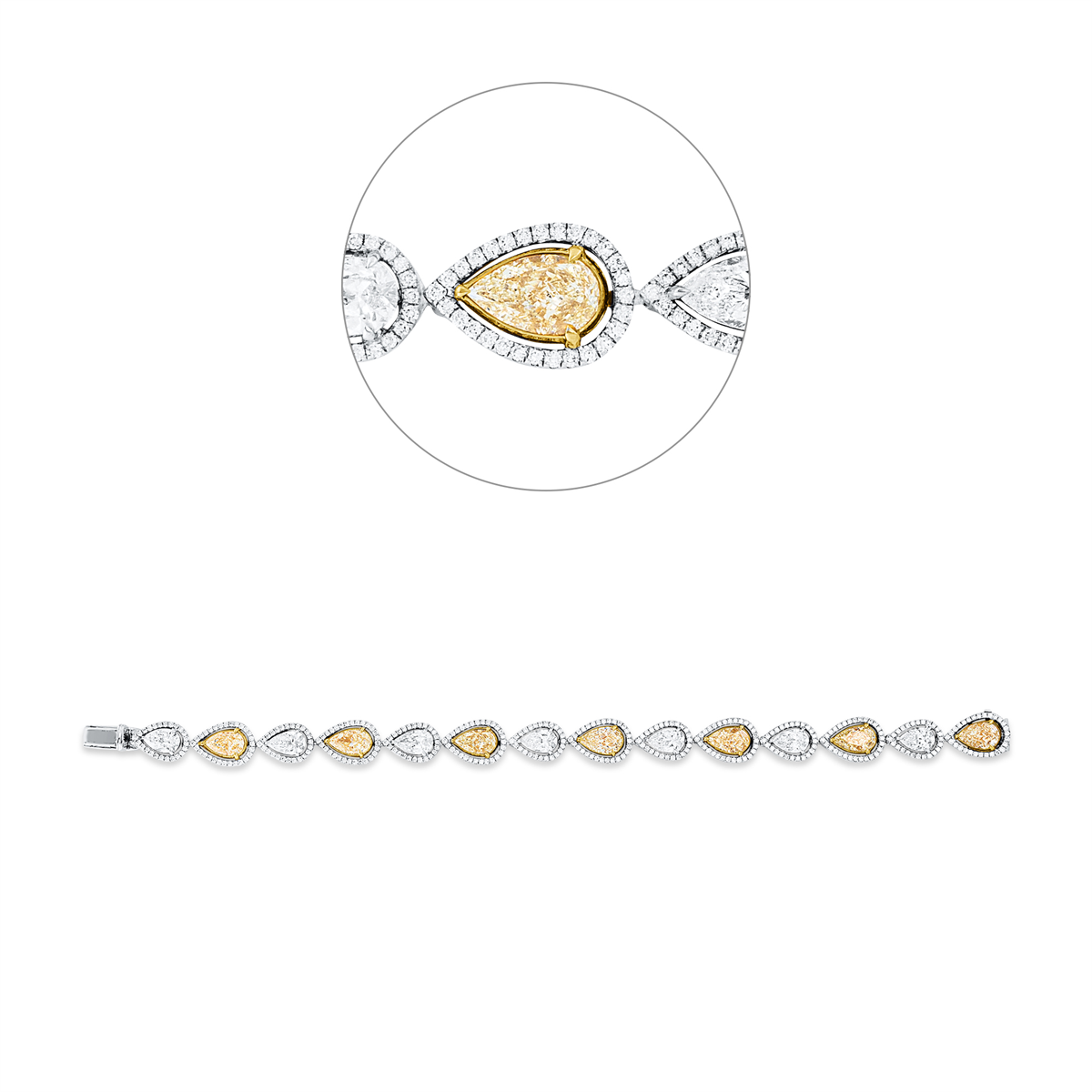 Armband 18 kt WG+GG, GIA 14pcs, 7 Tropfen 7,65 ct, gelb-vsi/si, 364 Brillanten 1,77 ct, TW-vsi/si, 7 Tropfen 4,75 ct, TW-vvs/vs, B:9,3 mm, L:18,0 cm, S:4,1 mm