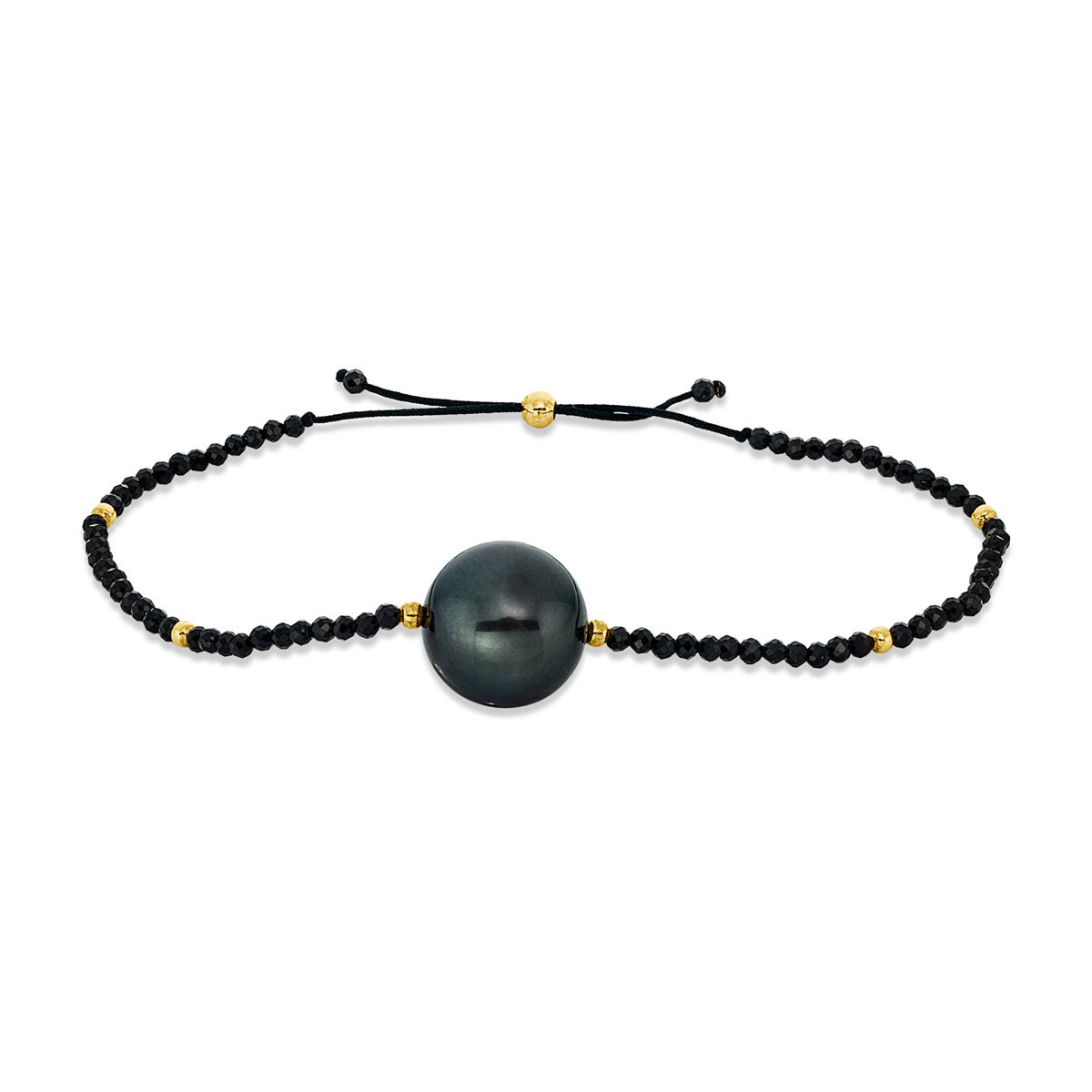Armband 18 kt GG, schwarzes Band, 64 Spinel 9,60 ct schwarz, 1 SS schwarz 12 mm, L:15,0 cm