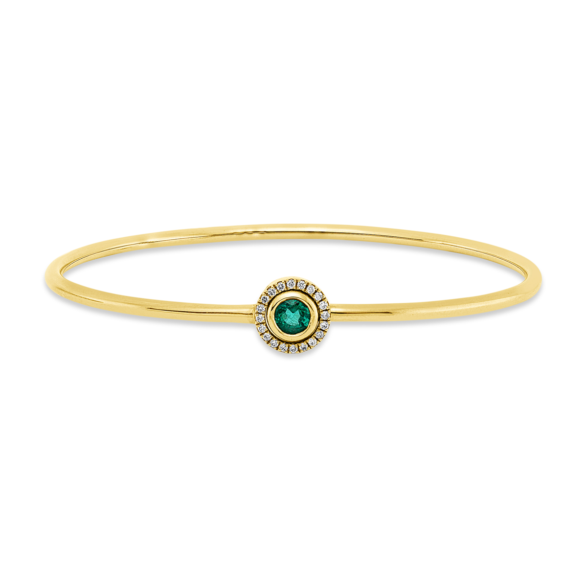 Armreif 14 kt GG, 20 Brillanten 0,08 ct, TW-si, 1 Smaragd 0,27 ct grün, H:45,0 mm, B:55,0 mm