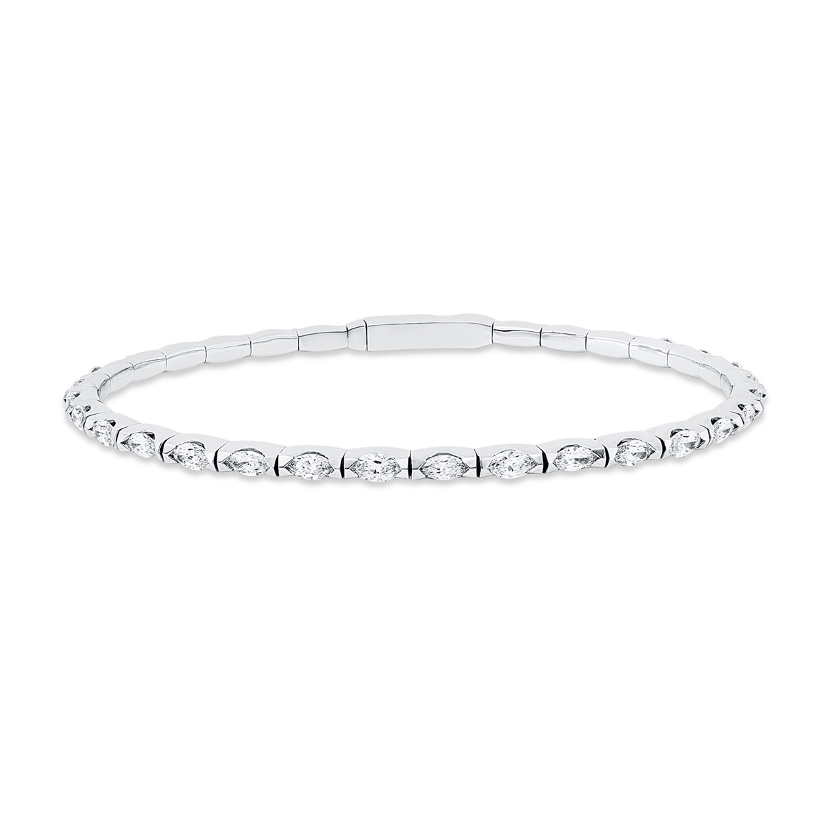 Armreif 14 kt WG, 30 Navette 2,81 ct, TW-si, H:50,0 mm, B:60,0 mm, S:2,9 mm