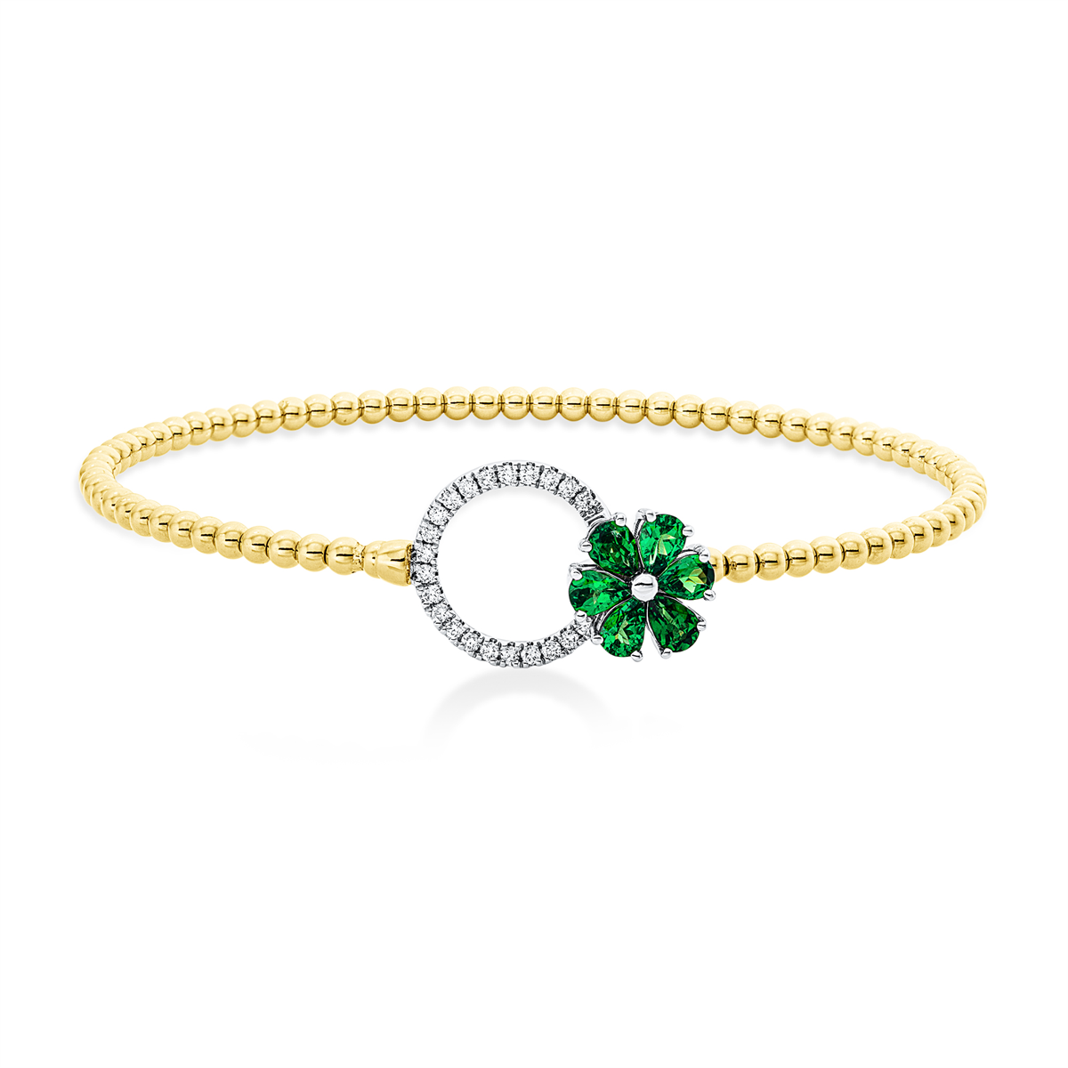 Armreif 18 kt GG+WG, 22 Brillanten 0,17 ct, F-vsi, 6 Tsavorith 0,93 ct grün, H:47,0 mm, B:57,0 mm