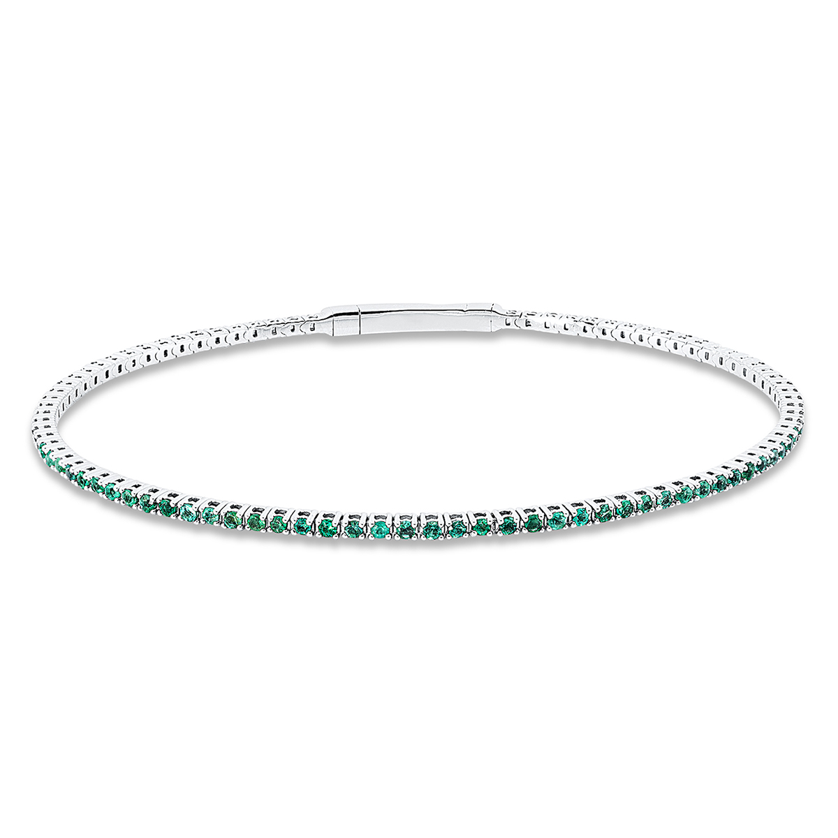 Armreif 18 kt WG, 87 Smaragde 1,32 ct grün, H:50,0 mm, B:60,0 mm, S:1,7 mm