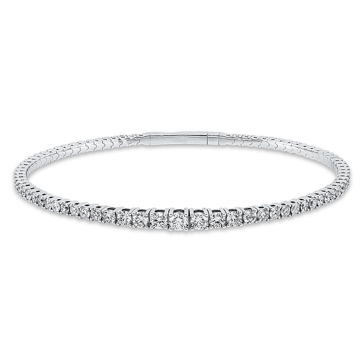 Armreif 18 kt WG, 7 Brillanten 0,71 ct, TW-si, 64 Brillanten 2,26 ct, TW-si, H:50,0 mm, B:60,0 mm
