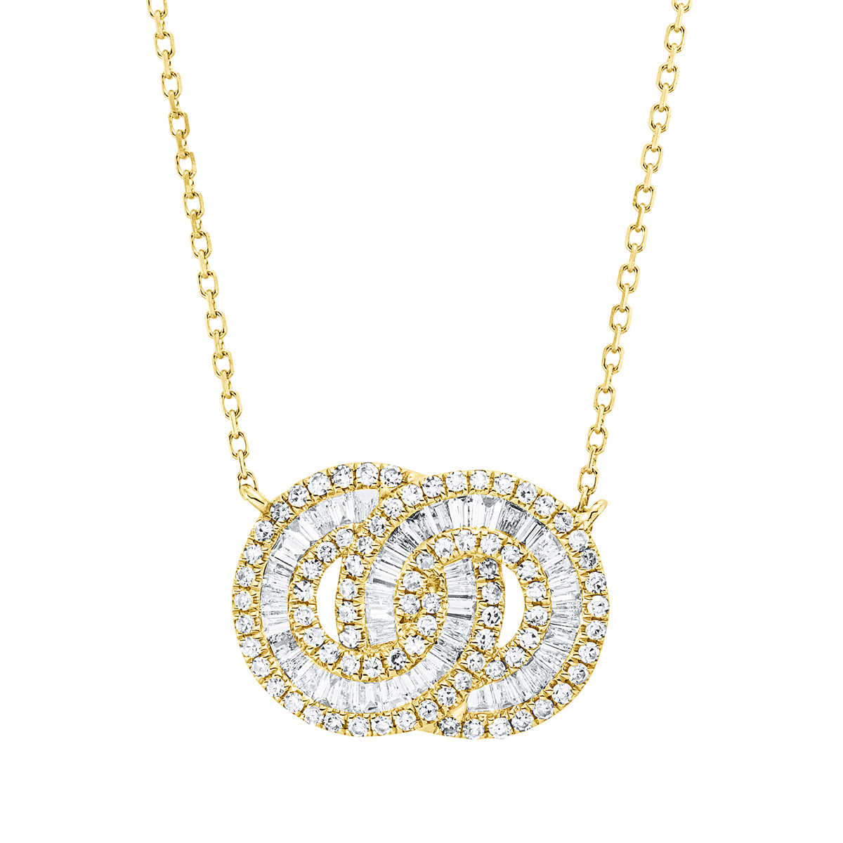 Collier 14 kt GG, mit ZÖ 40,6 cm, 44 Trapeze 0,30 ct, TW-si, 82 Diamanten 0,22 ct, TW-si, L:45,7 cm