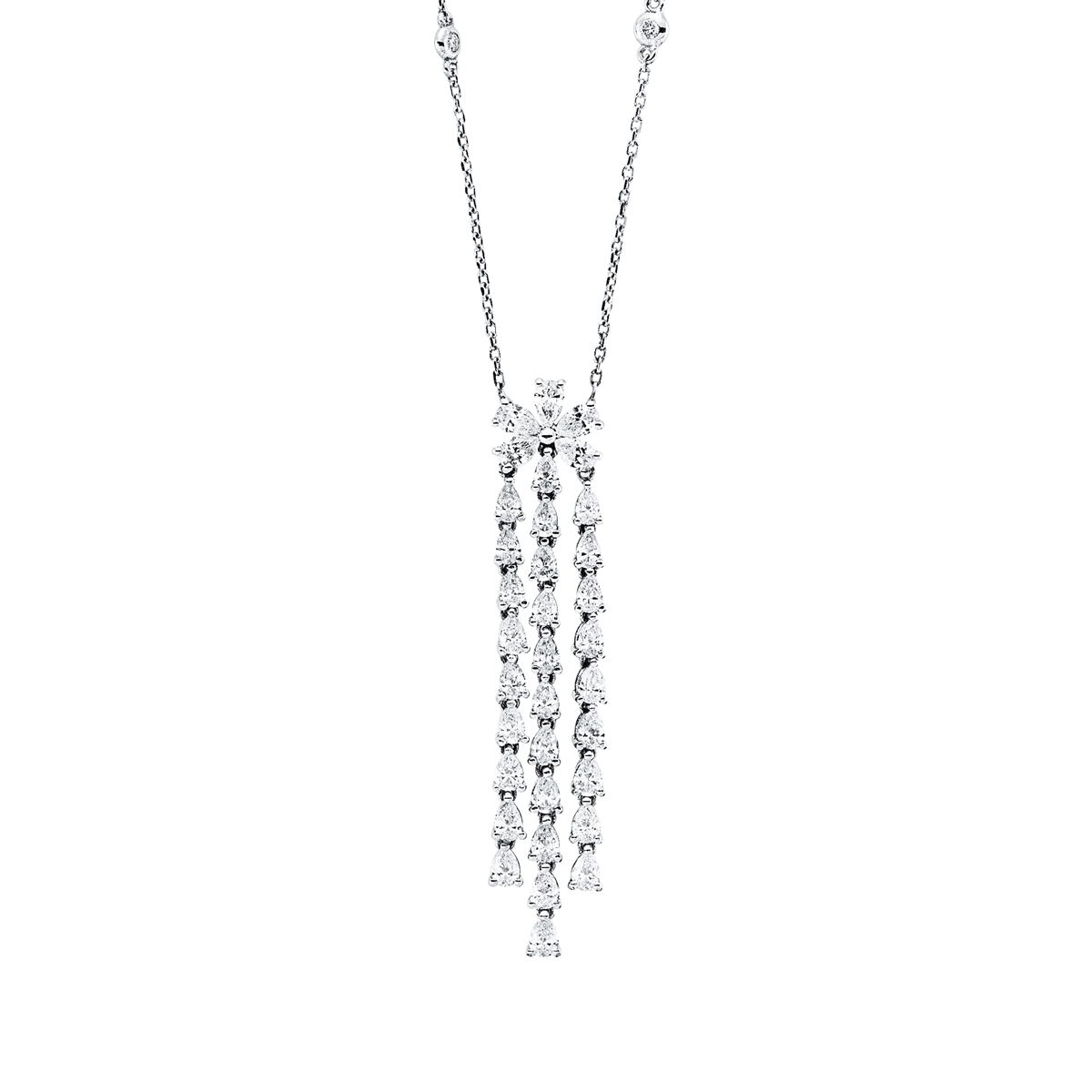 Collier 14 kt WG, 6 Brillanten 0,10 ct, F-vsi/si 1, 35 Tropfen 2,04 ct, F-vsi/si 1, L:43,2 cm