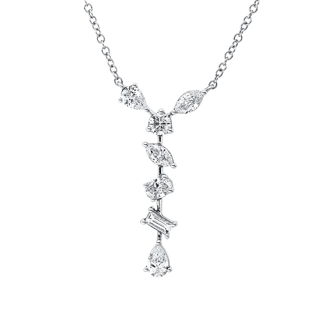 Collier 14 kt WG, 6 Fant-Schl. 0,83 ct, TW-si, 1 Brill. 0,14 ct, TW-si, L:45,7 cm