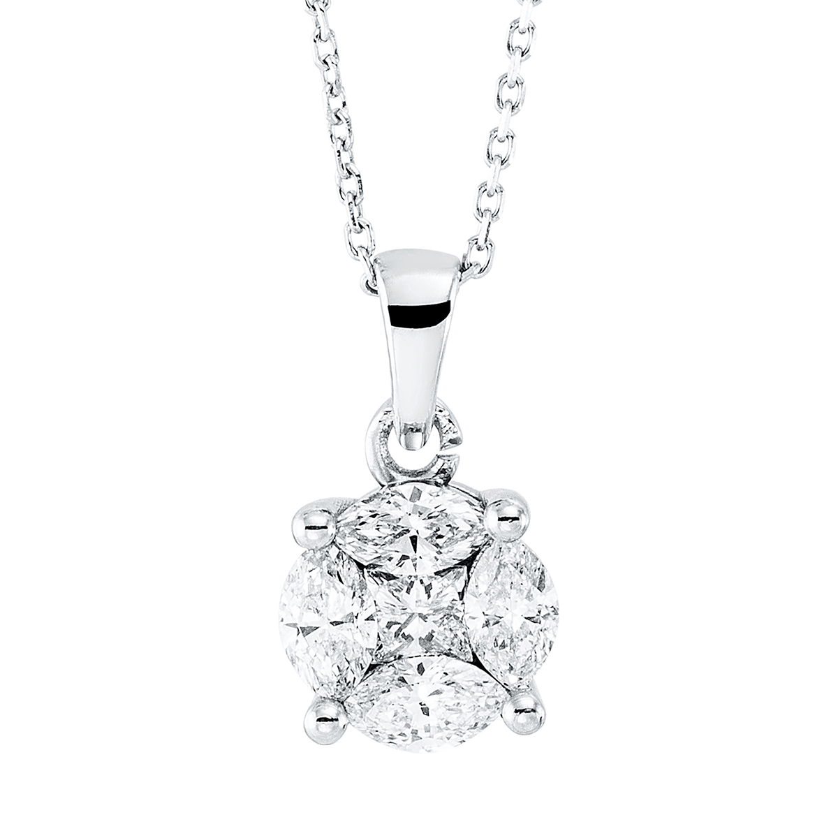 Collier 14 kt WG, mit Öse, 1 Princ. 0,09 ct, F-vsi, 4 Navette 0,40 ct, F-vsi, L:42,0 cm