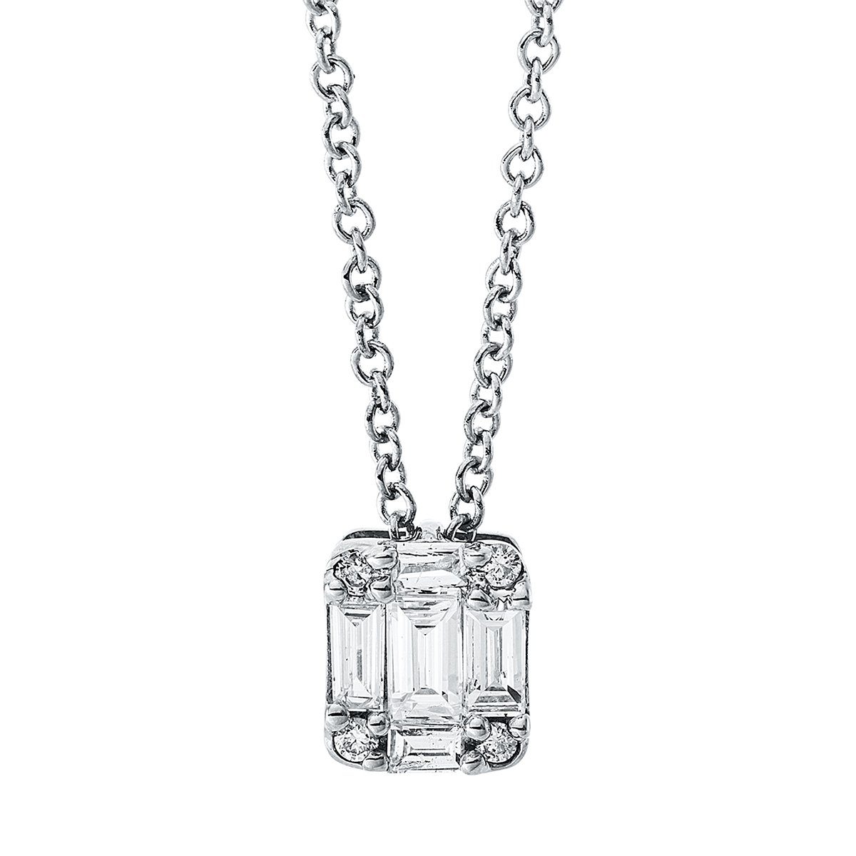Collier 18 kt GG, 5 Baguette 0,18 ct, TW-si, 4 Brillanten 0,02 ct, TW-si, H:5,7 mm, B:4,9 mm, L:45,0 cm, S:3,2 mm