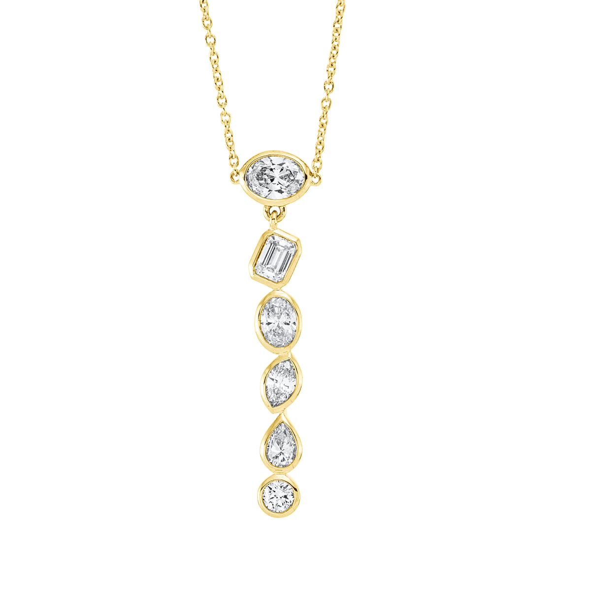Collier 18 kt GG, 1 Sm.schliff 0,25 ct, W-si, 1 Navette 0,16 ct, W-si, 1 Tropfen 0,16 ct, W-si, 2 Oval 0,64 ct, W-si, 1 Brill. 0,12 ct, W-si, L:45,0 cm