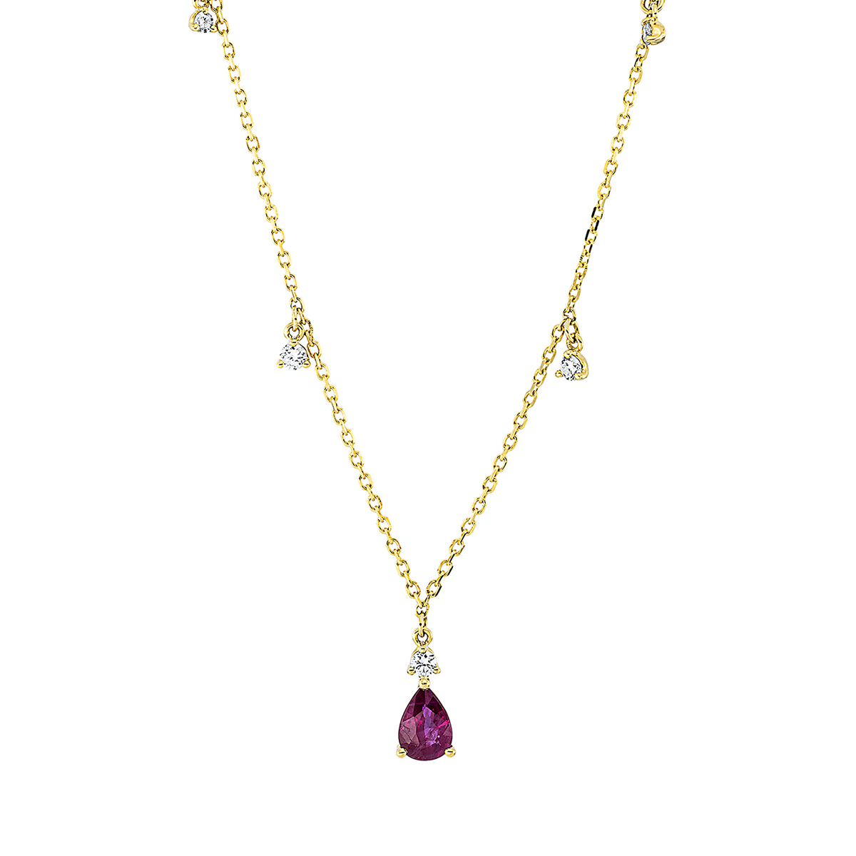 Collier 18 kt GG, 7 Brillanten 0,22 ct, TW-si, 1 Rubin 0,53 ct rot, L:43,2 cm