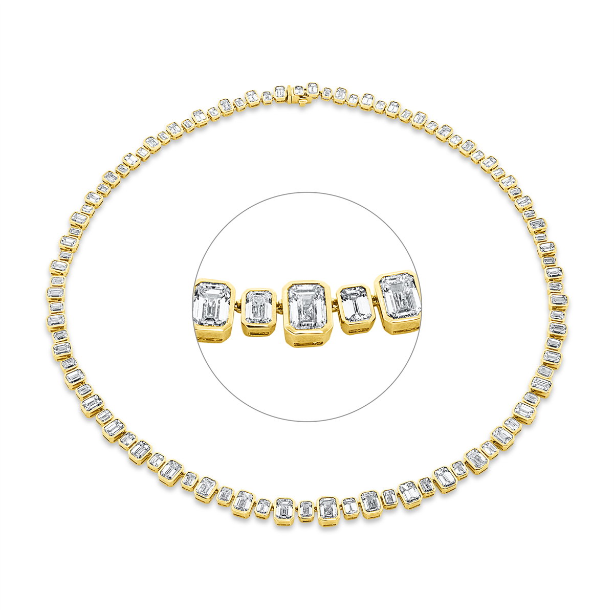 Collier 18 kt GG, 21pcs GIA's, 21 Sm.schliff 9,91 ct, TW-vs1, 73 Sm.schliff 12,78 ct, TW-vs1, L:40,6 cm