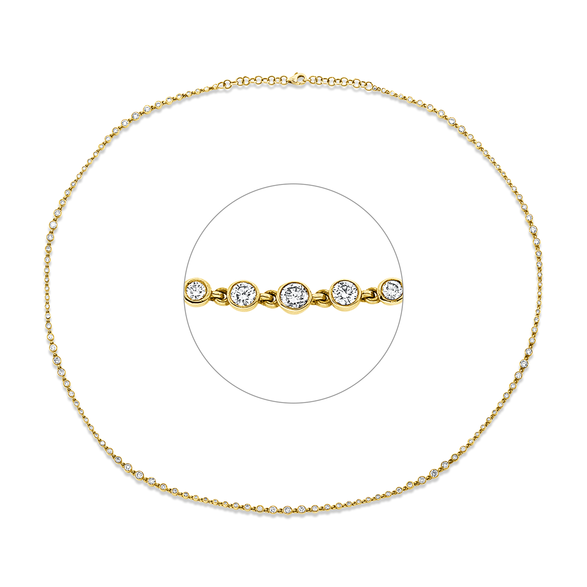Collier 18 kt GG, 18 Brillanten 1,47 ct, TW-si, 36 Brillanten 1,45 ct, TW-si, 40 Brillanten 0,66 ct, TW-si, 9 Brillanten 1,20 ct, TW-si, 18 Brillanten 0,53 ct, B:3,0 mm, S:2,0 mm