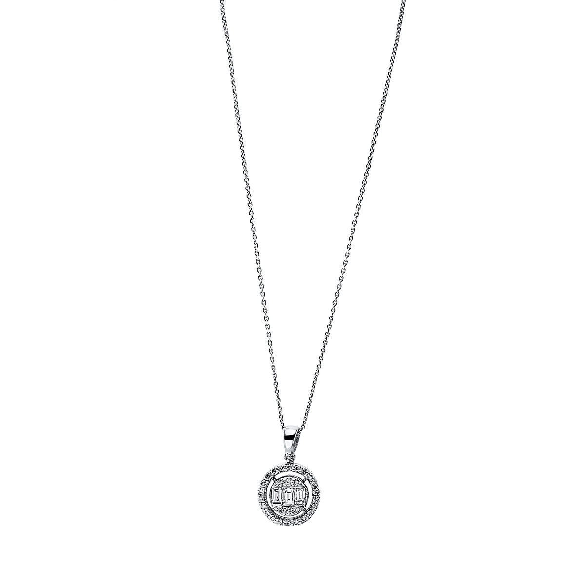 Collier 18 kt GG, 2 Baguette 0,13 ct, TW-si, 28 Brillanten 0,13 ct, TW-si, H:14,0 mm, B:8,6 mm, L:42,0 cm, S:3,8 mm