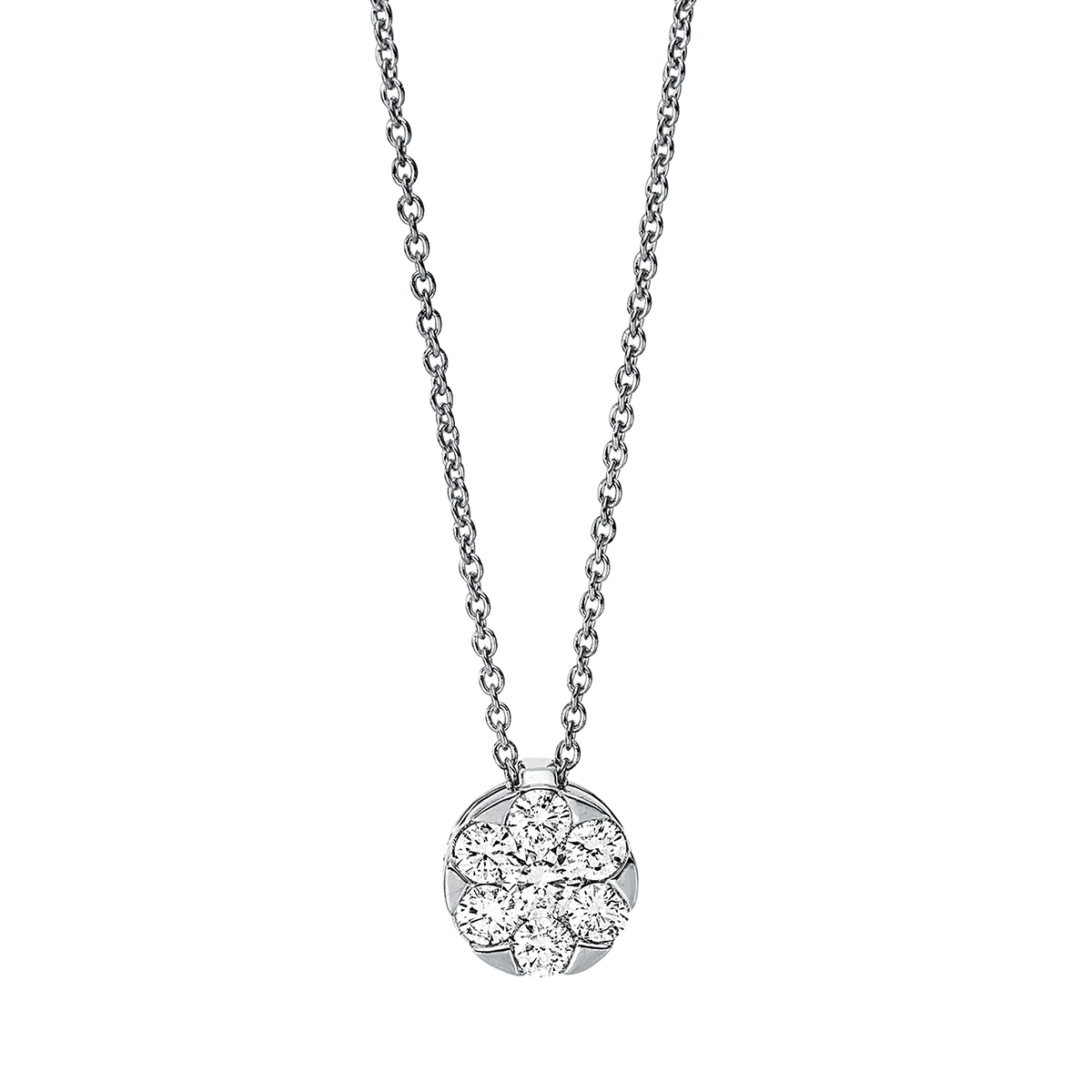 Collier 18 kt GG Kreis, mit ZÖ 42 cm, 1 Brill. 0,10 ct, TW-si, 6 Brillanten 0,27 ct, TW-si, H:7,8 mm, B:7,1 mm, L:45,0 cm